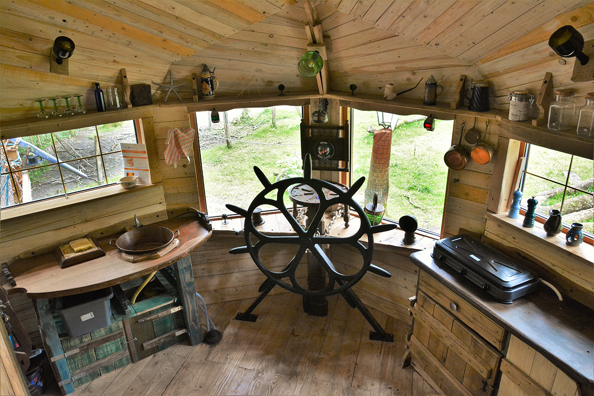Cette cabane sur le thème du bateau et des grands explorateurs a été construite avec de nombreux éléments de récupérations d’anciens navires et plonge les voyageurs dans un univers fantastique.